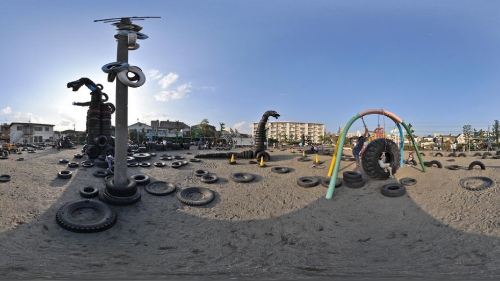 Japon : tous les jeux du parc Nishi Rokugo sont faits à partir de pneus.