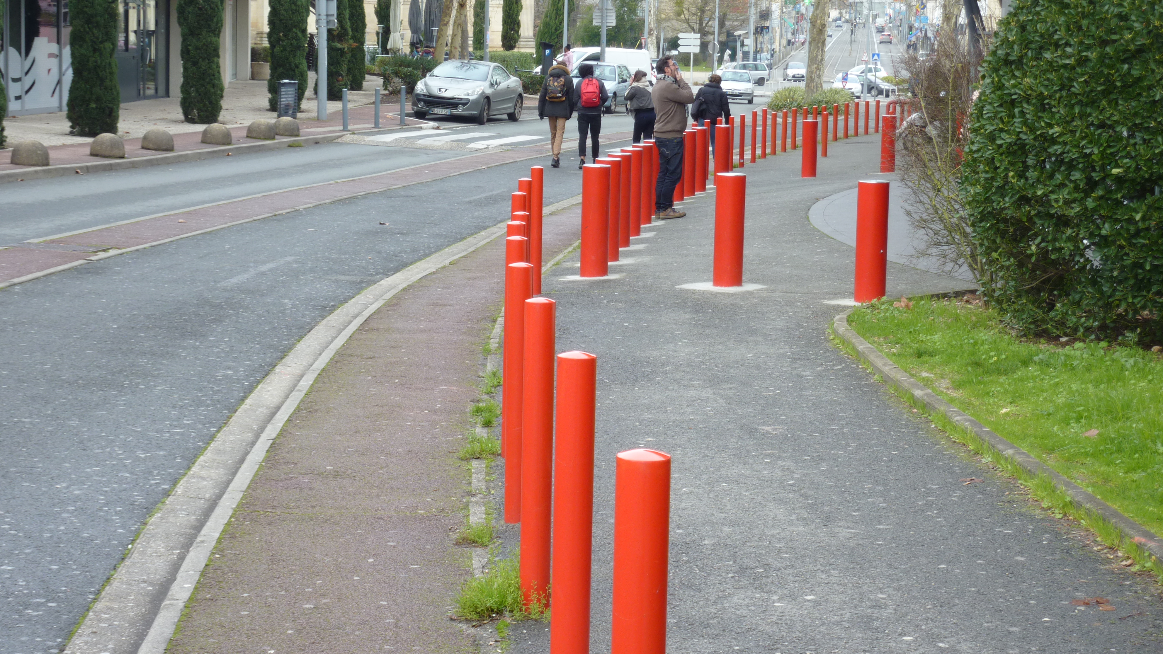 Les produits Déclic ont été retenus pour sécuriser les trottoirs à proximité des cinémas de la ville de Talence, au sud de Bordeaux, dans un dispositif incluant des bornes anti-bélier à têtes inox et des potelets.